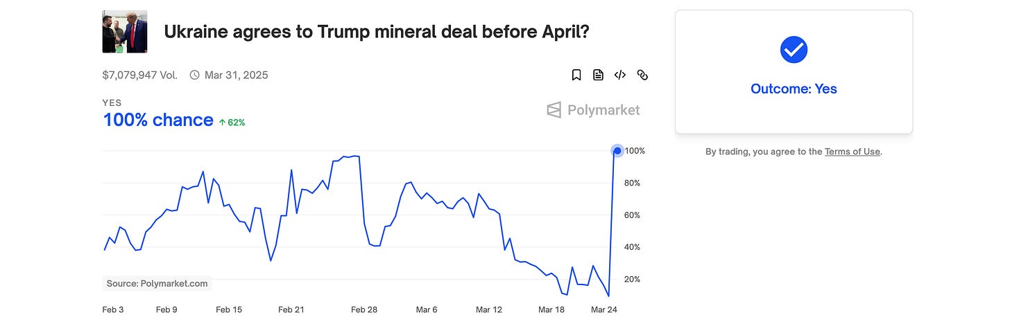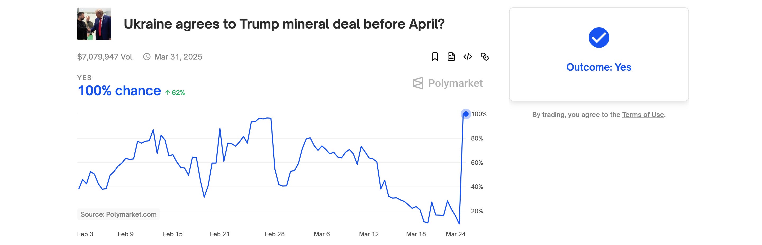 [7] https://polymarket.com/event/ukraine-agrees-to-give-trump-rare-earth-metals-before-april/ukraine-agrees-to-give-trump-rare-earth-metals-before-april?tid=1743254115453
